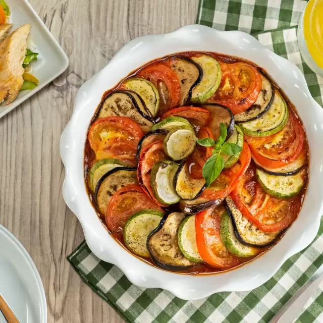Easy ratatouille recipe. This vegan vegetable stew is ready in less than 30 minutes. Tasty low-carb, keto dinner or side dish with healthy ingredients.