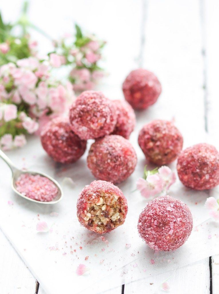 Bliss balls recipe with mulberries, rolled in desiccated coconut. Easy to make raw vegan truffles. These power balls are a healthy, nut-free and tasty snack
