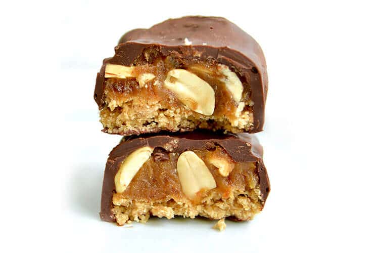 Vegan Snickers Bars which will melt in your mouth! A no-bake recipe which is gluten-free, dairy-free, plant-based, and easy to make. Healthy caramel version included.
